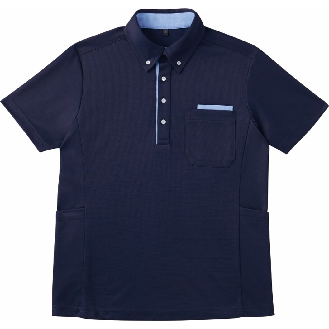 ホワイセルにシックでおしゃれなポロシャツが登場。落ち着いたダークカラーで安心感を与えます。上品なシェル風釦と、衿裏・前立て・胸内ポケットの配色生地(シャンブレー素材)を使用する事で、暗すぎず優しい印象に。ボタンダウン仕様できちんとした印象を与えます。収納力抜群の両脇ポケット付きも嬉しいポイント。介助時に邪魔にならない位置にポケットが付いている為安心です。