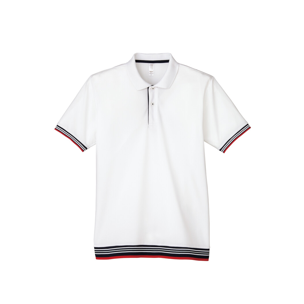 裾・前立て・袖のカラーがありがちでない個性を生みます。快適メッシュポロシャツです。やわらかいシリコン製ボタンを使用。