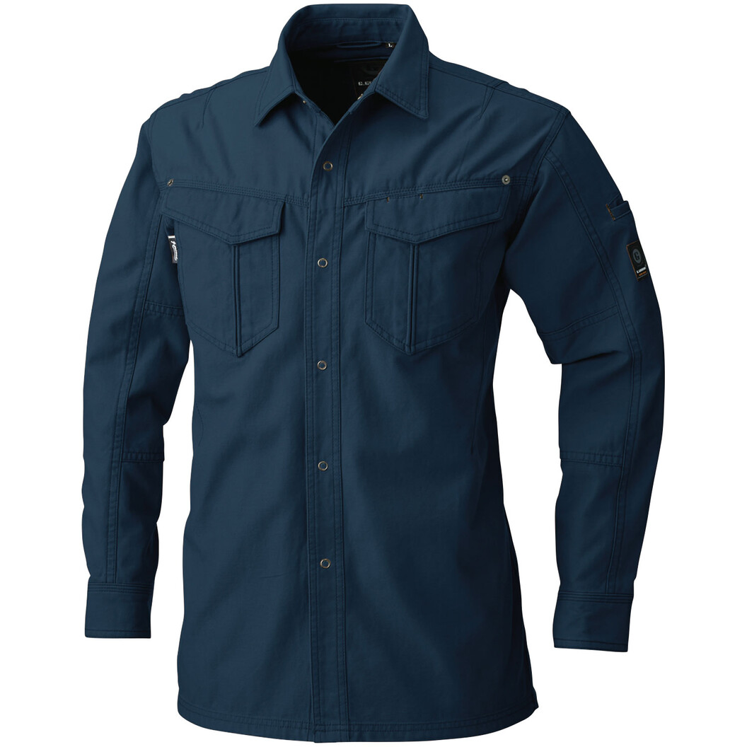 防縮性、吸汗性を兼ね備えた綿100%素材!製品洗い加工によるソフトな着心地の人気商品です。肌触りが良く吸湿性のある綿100%ツイル(裏使い)素材。火を扱う現場にも対応した仕様。製品洗いによるソフトな風合いと防縮性。