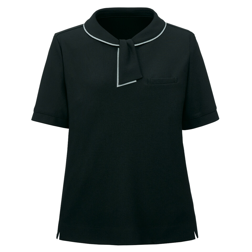 クラシカルフェミニンなきれいめ、ほどよいハリ感とシワになりにくいのがうれしいボウタイのポロシャツです。内側脇下に消臭テープ付き。上質なハリ感がありながら、心地よいストレッチ性もありシワになりにくいニット素材。同素材のリサイクル・ニットシリーズとのボトムスとの組み合わせがおすすめです。再生ポリエステル糸を使用したエコ素材で、地球にやさしいです。