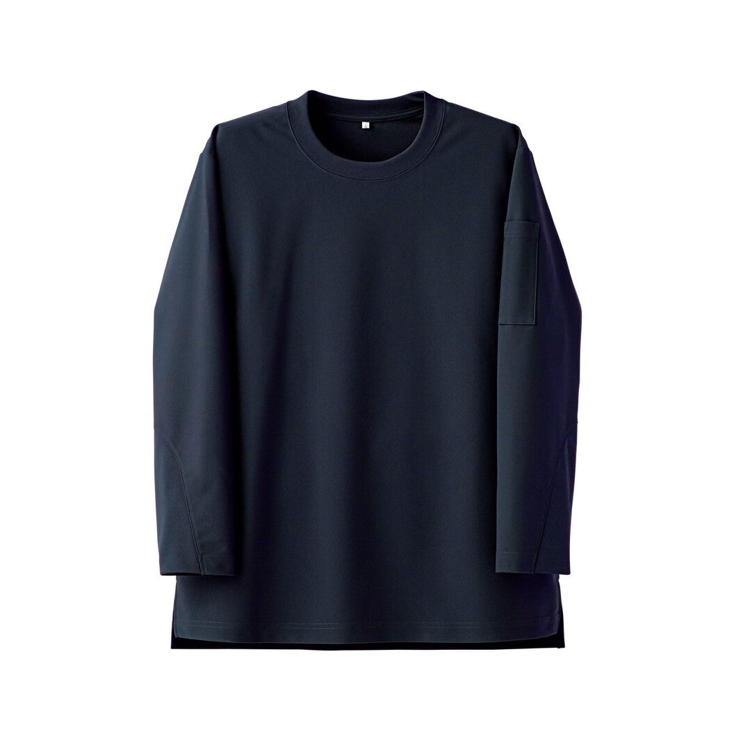 クルーネックTシャツ長袖です。品格とユニフォーム機能を併せ持つTシャツ「qTシリーズ」の1つ。清潔感、信頼感、高品質、多機能かつTシャツの特性であるシンプルで手軽なカジュアル感ある新しいユニフォームアイテムです。ホテル、レストラン、アミューズメント等のサービスの進化は目まぐるしく、想像以上に素晴らしい。常にお客様に大きな新しい感動を与え続けている。既存のユニフォームでは彼らのサービスに合わなくなってきているのも事実。そんな中で1つの提案、ハイクオリティーTシャツを開発。Tシャツアイテムに注目したのはそのカジュアルさと誰もが抵抗なく着れる気軽さ。これを昇華させることで彼らのコンセプトに合うサービスユニフォームが出来るのではないかという思いから。大きな特徴は3つ。カジュアルながらも高品質、かつ必要なユニフォーム機能があること。働く人が品よく素敵に見えること。商品がモダンデザインになっていて、かつ内装と調和すること。ぜひ体験して欲しい。シリーズ展開になっています。ボディー全て同じカッティングの長袖・半袖展開(サルエルパンツは別)。衿のみデザイン違いの5色展開(白とアイボリーは別)です。セクションで衿・色分けなども出来、まとまりのある空間作りも簡単に出来ます。
