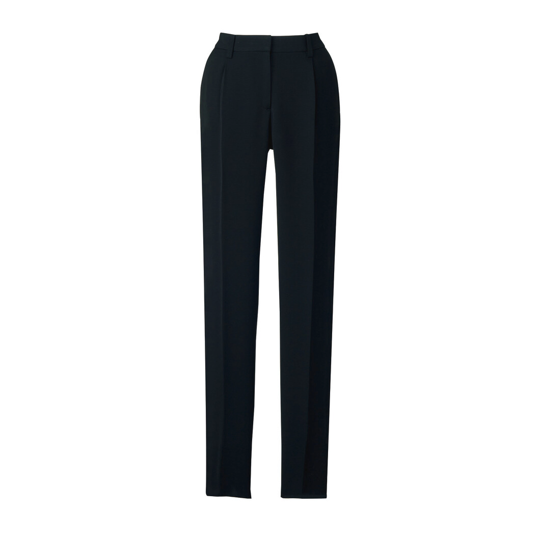 Triacetate Black 信頼感を与えるブラックスーツシリーズ 美しく高級感のあるブラックが、上品さと信頼感を高め凛とした女性像を叶えてくれます。トリアセテート素材を使用し、しなやかな着心地の良さも魅力。 パンツ