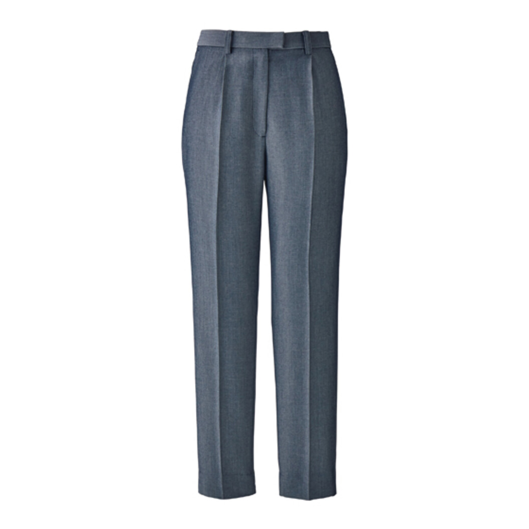 Chambray Cd シャンブレー素材で涼しげ美人を叶える 清涼感のあるドライな風合いや動きをサポートするストレッチ性が魅力。上品なシャンブレーと立体的な織組の千鳥で多彩なコーディネートを楽しめます。 テーパードパンツ