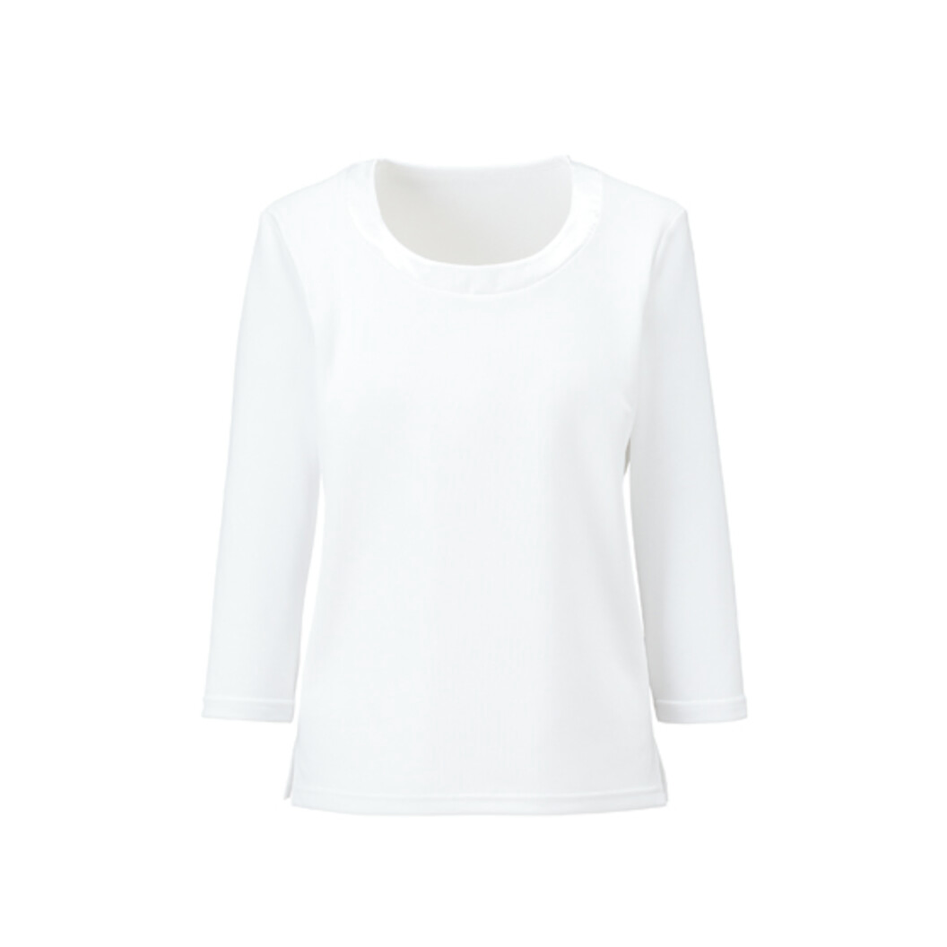 Satin Accent 衿ぐりのサテンがさりげないアクセントに 衿ぐり切替え七分袖ニット