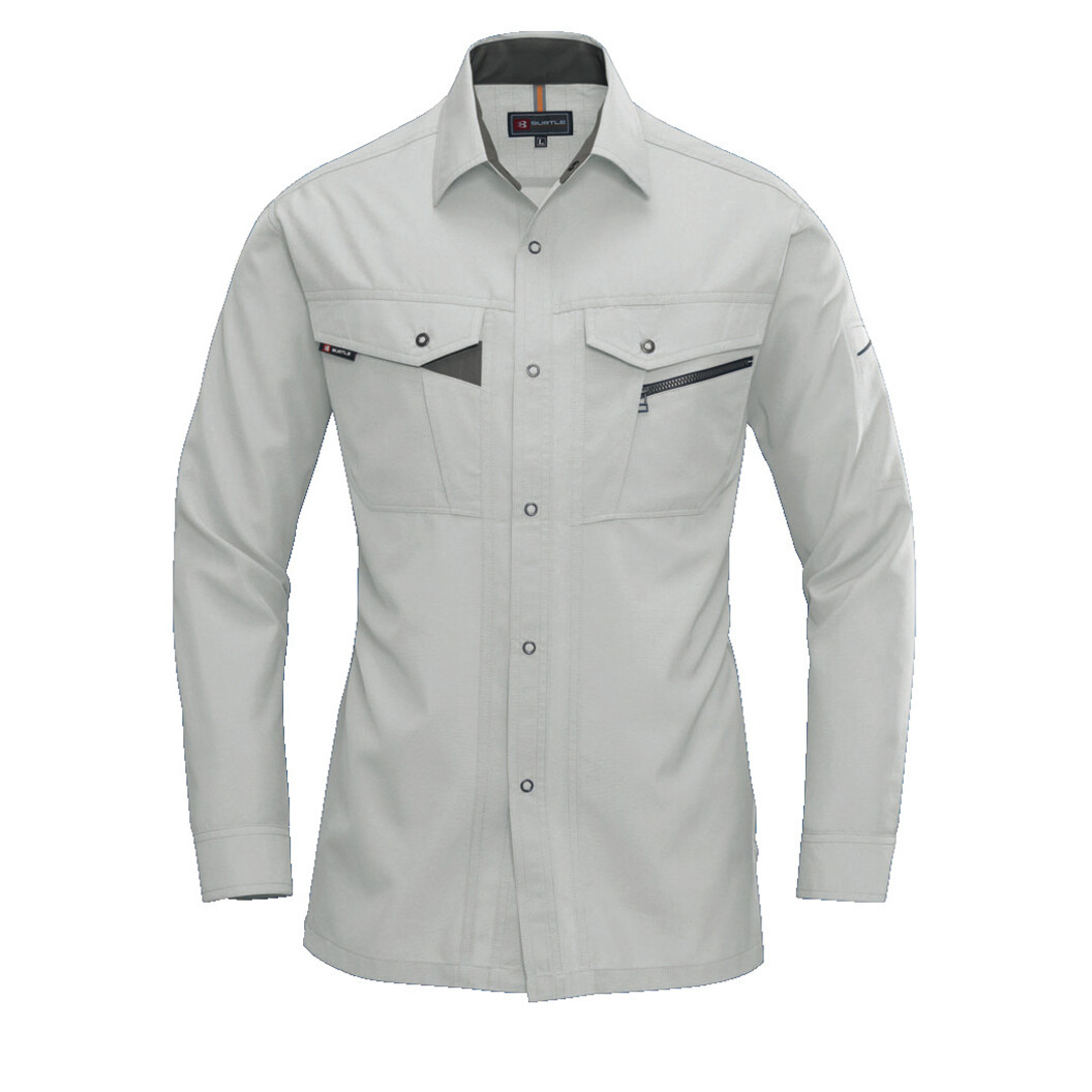 ボディに配した様々な収納性、防汚性、形態安定性と、ワークシーンを想定した機能を集約させた、ポリエステル100%ツイル素材のスタンダードモデル。高密度織りの程良い光沢できれいめな印象があり、タイドアップにも対応する魅力的なプロダクト。高密度織りの高品質な日本製ポリエステルツイル素材を使用。水・油等をはじく防汚加工を施しイージーケアを実現。洗濯時にも型崩れしにくい形態安定性が清潔感のあるユニフォームシーンを実現。