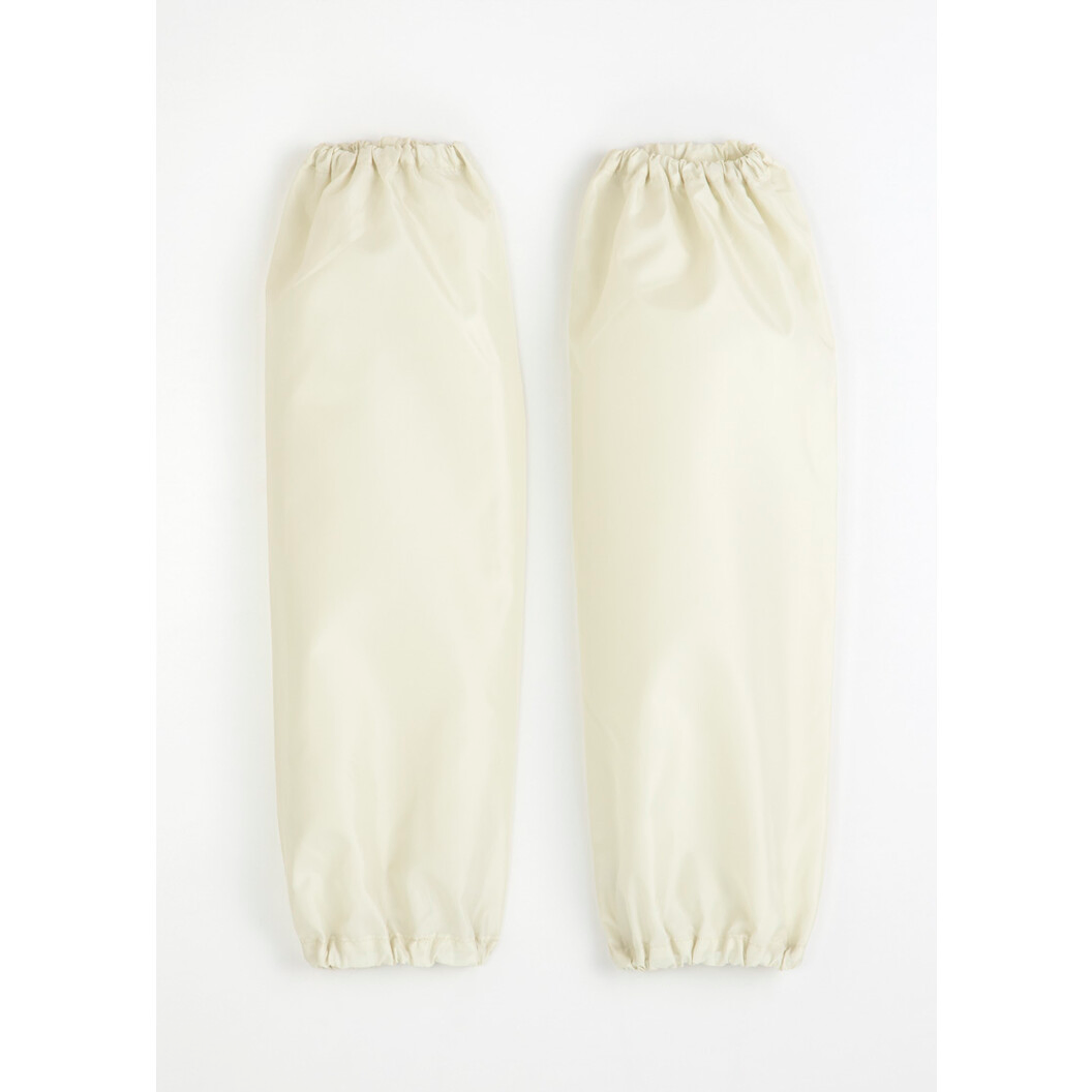 腕部分への飛沫を防ぐアームカバー。先端部分の開き部分に親指を通していただくと甲の部分もカバーできます。軽量で撥水処理をした素材を使用し、繰り返し洗濯して清潔に使用できる環境にも優しいアイテムです。