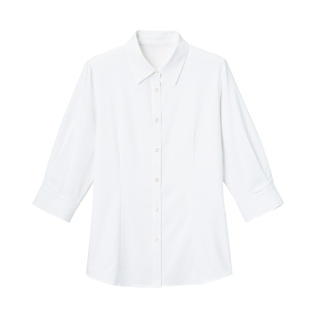 動きやすくて美しい究極のコンフォートブラウスです。働くシーンによくある動きを全てサポートします。おうちの洗濯機で洗え、ハンガーにかけて干せば、ノーアイロンでビシッと清潔に保てます。ラクチンお手入れでいつもシャキっとした印象になります。2、3時間で乾くのも自慢のブラウスです。7分袖なので手を洗ったり、かがんだりする際に腕まくりの必要がなく、無駄な動きをすることなく、効率がアップします。オールシーズン使えるコスパ抜群の七分袖ブラウスです。
