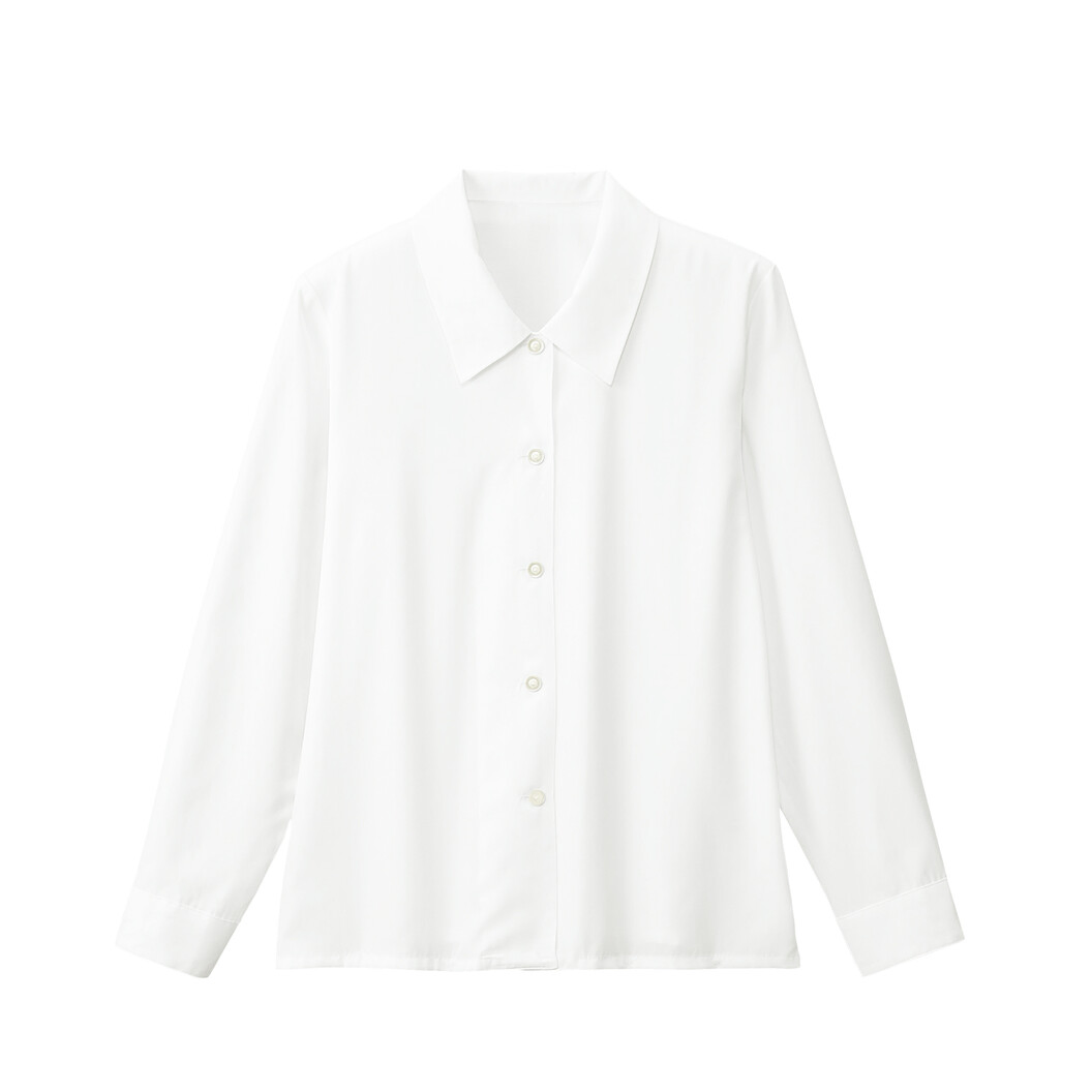 女性の品を感じさせる上品な長袖ブラウスです。ポリエステル85%と綿15%のライティビエラという素材を使用しているので、繰り返し洗濯してもしわになりにくく、型崩れしにくいのが特徴です。自然なソフトさときれいな白さをキープしてくれるので、いつでも新品のような着心地に。おうち洗濯ができるので、いつでも清潔なままを保てて、清楚なイメージを着こなせるシンプルブラウスです。従来品の3/4の乾燥時間なので、時間も手間もかからない優秀な長袖ブラウスです。