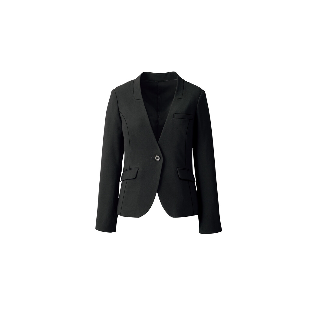 シャープなカッティングでストレッチの効いたノーカラージャケットです。ジャケットの袖口は折り返し可能で、手首を見せるとスッキリとした印象に。長袖なので、オールシーズン着用可能です。首回りのスッキリとしたノーカラージャケットは知的で都会的な印象を与えてくれるアイテムで、スマートな着こなしができます。ボタンに【nuovo】のロゴが彫られたメタリック風のオリジナルボタンを使用するなど、さりげないポイントでこだわりぬいたブラックジャケットです。