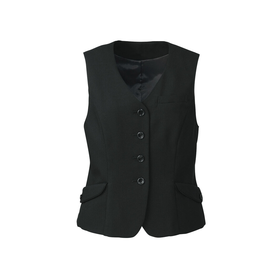 上質なおもてなしにふさわしいスーツシリーズのベストです。収納力抜群のポケットがついた細見え効果も叶えるベストです。サイドのバイヤス切替が細見え効果を発揮します。女性らしいシルエットを演出します。ポケットは小分けして収納できる二重仕様になっています。右内側には印鑑収納スペースも確保しています。スリットを施すことで、見た目の美しさと着心地の良さを追求しました。信頼感のある雰囲気に親しみやすさも加味したおもてなしスタイルが好印象を与えます。上品さをプラスしたひと味違う高級さのあるベストです。