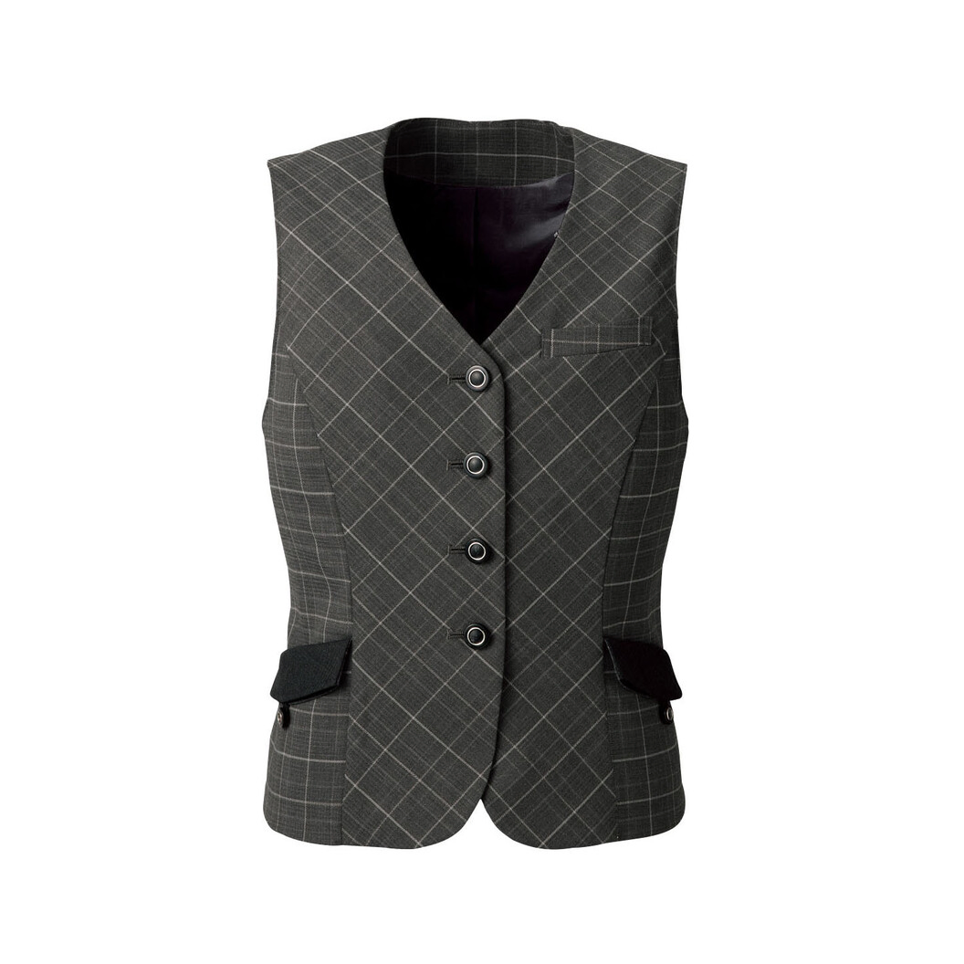 スッキリ見えるチェック柄×バイヤス切替のコンフォートスタイルベストです。前後の見頃をバイヤス地使いにしたことで、スッキリ見える視覚効果を発揮します。フラップにシャドウチェックを使い、高級感のある素材にパンチの効いたウインドウペンでシャープさを引き立たせている、エレガントな雰囲気のベストです。ウエストの引き締めや細見え効果がある女性に嬉しい作りにこだわりました。すぐに取り出すものはオープンポケットに、と使い勝手が良い特殊なフラップ2重ポケットというおしゃれ感がありながら収納力抜群なベストです。
