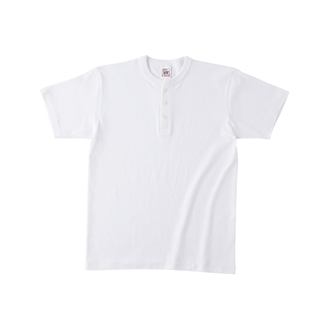 無骨な魅力とモダンなディテールが特徴のオープンエンドマックスウェイヘンリーネックTシャツです。 ヘンリーネックデザイン:前立てとネコ目ボタンで首元にアクセントを加え、クラシックな雰囲気を演出します。 二本針バインダー仕様:襟元の太めのバインダーが約2.5cm幅で、耐久性とスタイルを強化。 高品質オープンエンド糸使用:ふっくらとしたボリュームと、ドライでざっくりした風合いを実現するオープンエンド糸を採用。 素材の純度:綿100%で、肌に優しい快適な着心地。 適度な重量感と厚み:210g/㎡の生地重量と6.2ozの厚さで、シーズンレスに快適に着用できます。