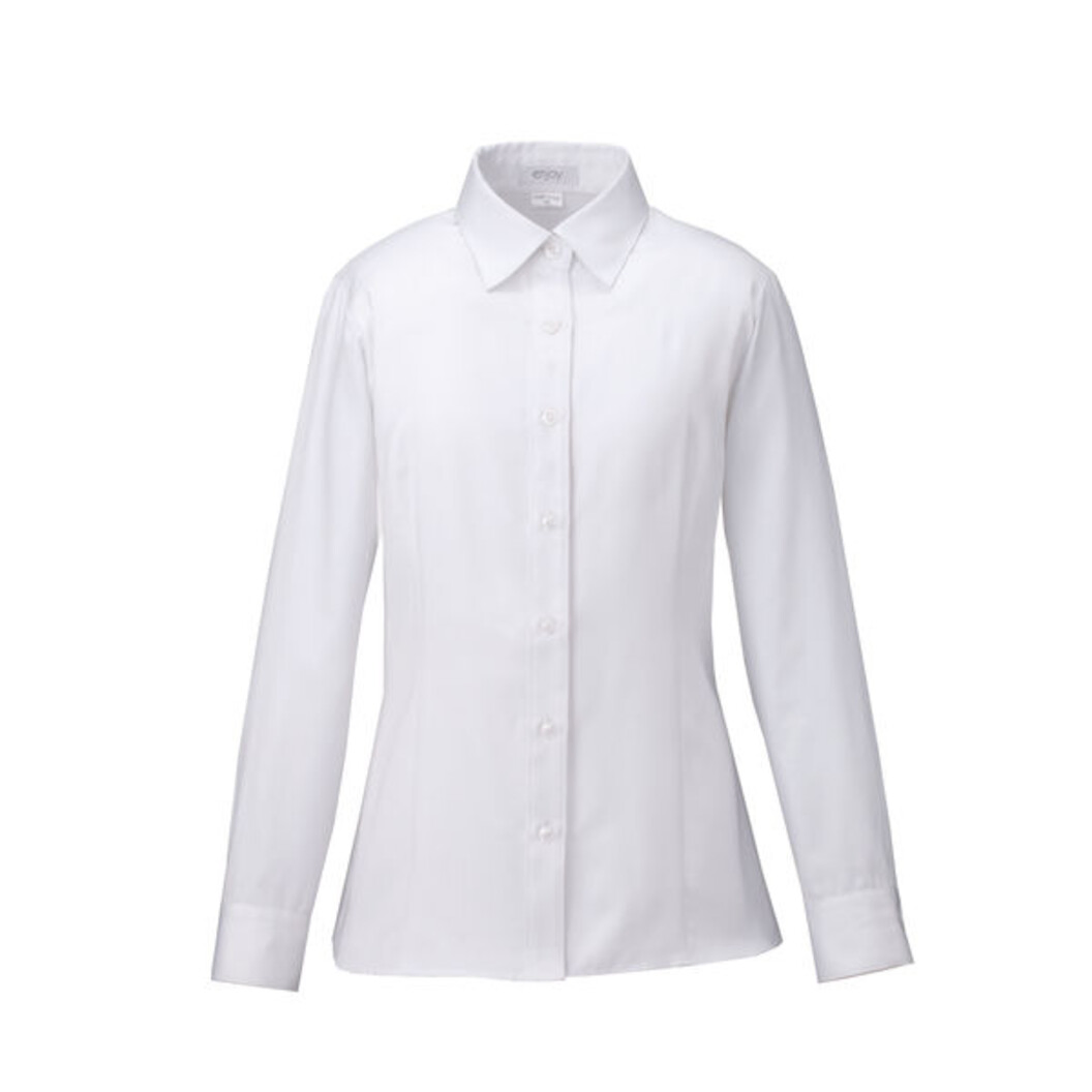 ドレッシーな雰囲気のクールで洗練されたシャツカラーの長袖シャツブラウスです。 衿腰を高めにした、シャープでかっこいい立ち衿のパターンで、着こなしをワンランクアップ 動きやすさ抜群で着くずれしにくい、enjoyARM360°搭載 スカーフループ搭載(実用新案登録番号第3186092号) バストケアボタン搭載 調節可能な袖口ボタン
