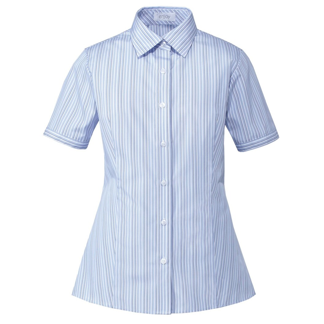 きりっとしたニュアンスをストライプで演出した、肌ざわりなめらかなクールですっきりとしたシャツブラウスです。 スタイリングの幅が広がる知的でスマートなストライプシャツ。 衿腰を高めにした、シャープでかっこいい立ち衿のパターンで、着こなしをワンランクアップ。 動きやすさ抜群で着くずれしにくい、enjoyARM360°が特徴です。
