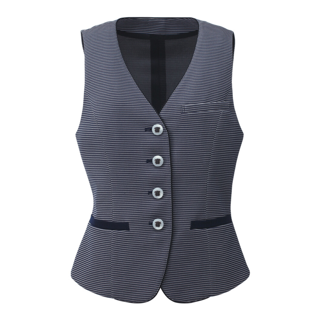 夏を感じる、通気性抜群のボーダー柄のベストです。 吸水速乾性、UVカット、防透性に優れた高機能糸「スプリンジー」を使用。 マリンボーダー柄をシックな配色で仕上げることでカジュアル感を抑え、夏らしさを生かしながら誠実な大人っぽさを表現しました。 メンテナンス性に優れたENJOYオリジナル素材です。