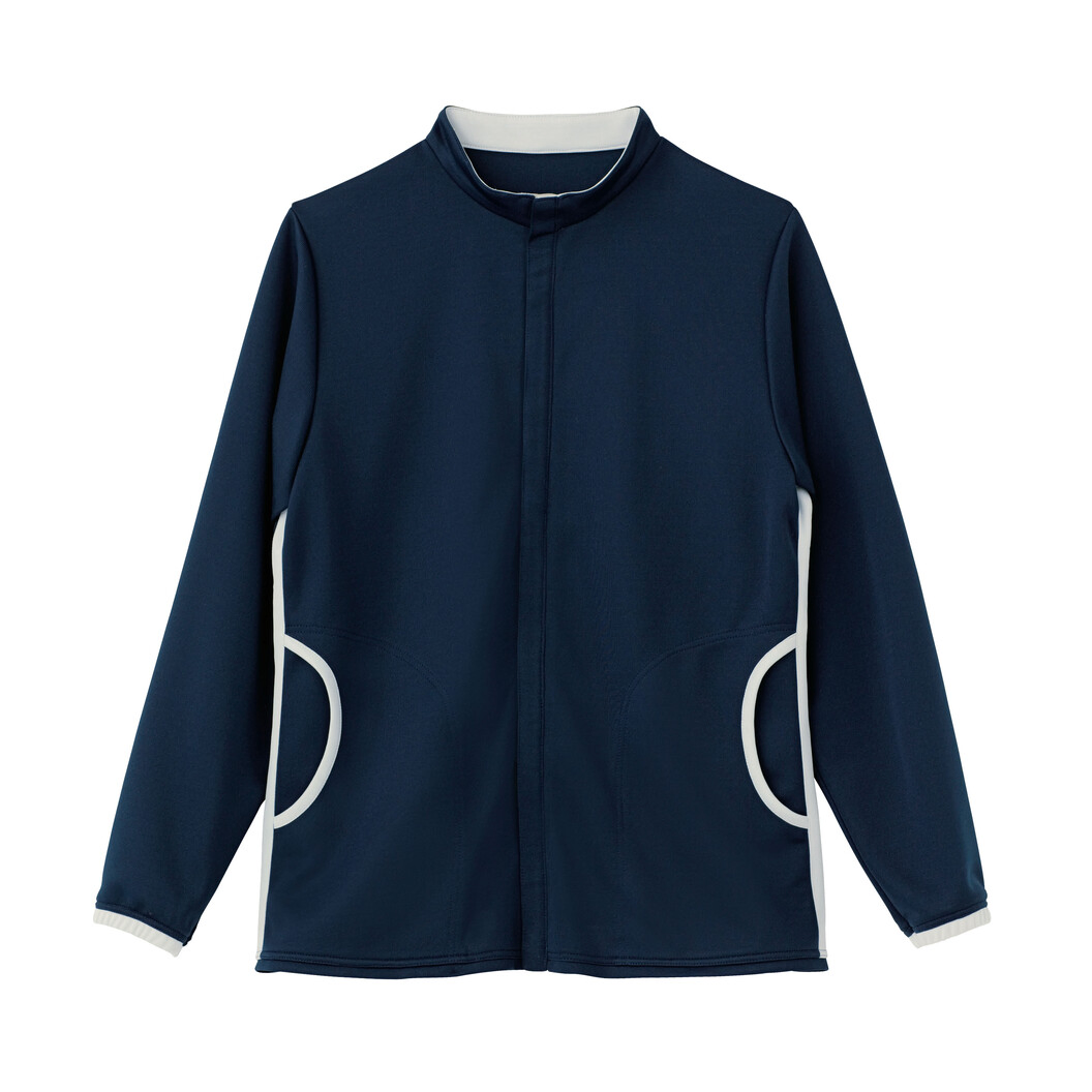 ほどよいフィット感のスリムシルエットのニットハーフジャケットです。 伸縮自在で着心地満点の高機能ウェアで、スポーティーな印象のスタンドカラーは、首周りに圧迫感を与えないスタンドオフ仕様です。 配色されたライトグレーは衿裏で明るい表情をサポートします。 脇ラインでシャープにタテラインを強調したすっきりシルエットを演出してくれます。 半円状にカットした配色ポケットは全体イメージを優しく調和し、また、物の出し入れが容易で使い勝手の良い形状です。 比翼仕立てのフロントファスナーは、ケアされる人のことを考えた優しさ仕様です。 お仕事の体温調節として気軽に羽織れる一枚です。