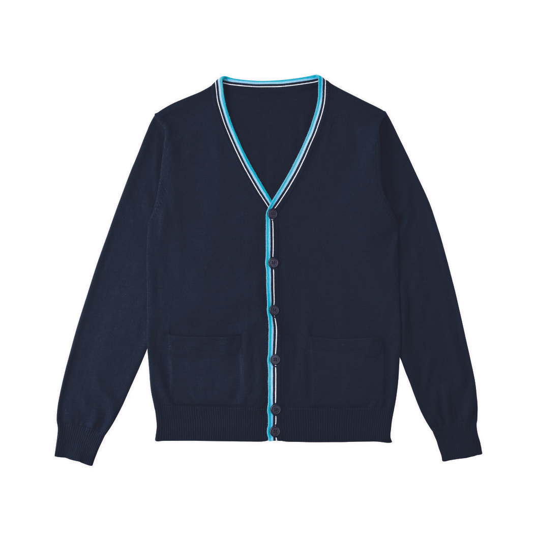 グラデーションラインで表情をパッと明るく。 どんなトップスにも合わせやすいベーシックなVネックカーディガンに、グラデーションカラーのラインを取り入れて、明るくおしゃれな印象に。 少しゆったりめのシルエットが特徴です。