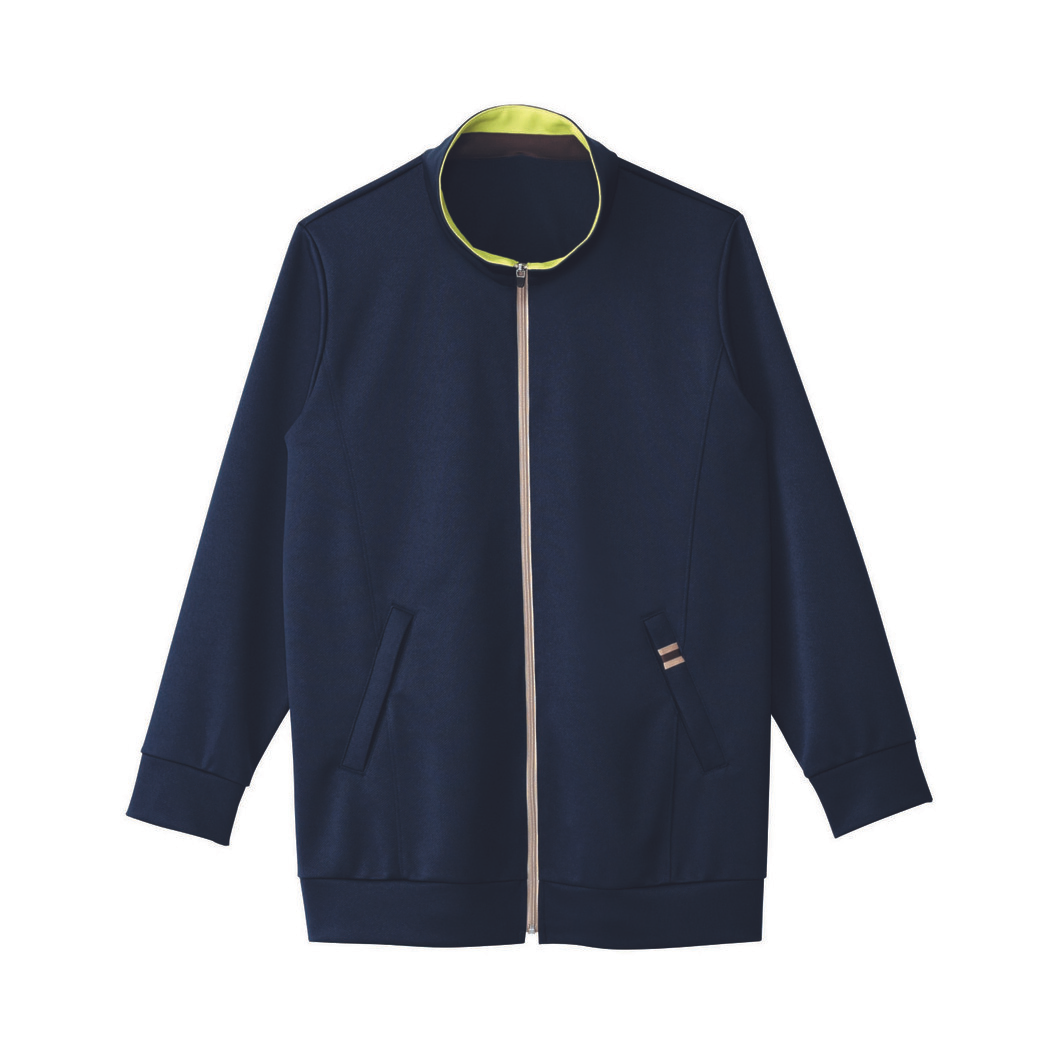 ふわりと軽く、動いても重ね着しても涼しい、オールマイティーに対応するニットジャケットです。 顔まわりを明るくみせるナチュラルカラーリングで、軽量&しなやかストレッチでエアリーな着心地です。 男女共用で男性にも女性にも合うWマスターパターン使用。 チークのように顔を明るくみせるカラー+引き締めカラーで大人っぽい印象のハイネック衿は、衿が高めなのに顔に衿端がふれにくい仕様です。 ロック式ファスナーで引き手がブラブラしない、エアスルーポロのロングでも裾から出ない、どんなコーディネートにもオールマイティーに対応できる着丈です。 水仕事にもうれしい長すぎず、ピタッととまりやすい袖です。 大容量ポケットで、物が落ちにくい重ね玉縁ポケットは、配色テープがさりげないポイントです。