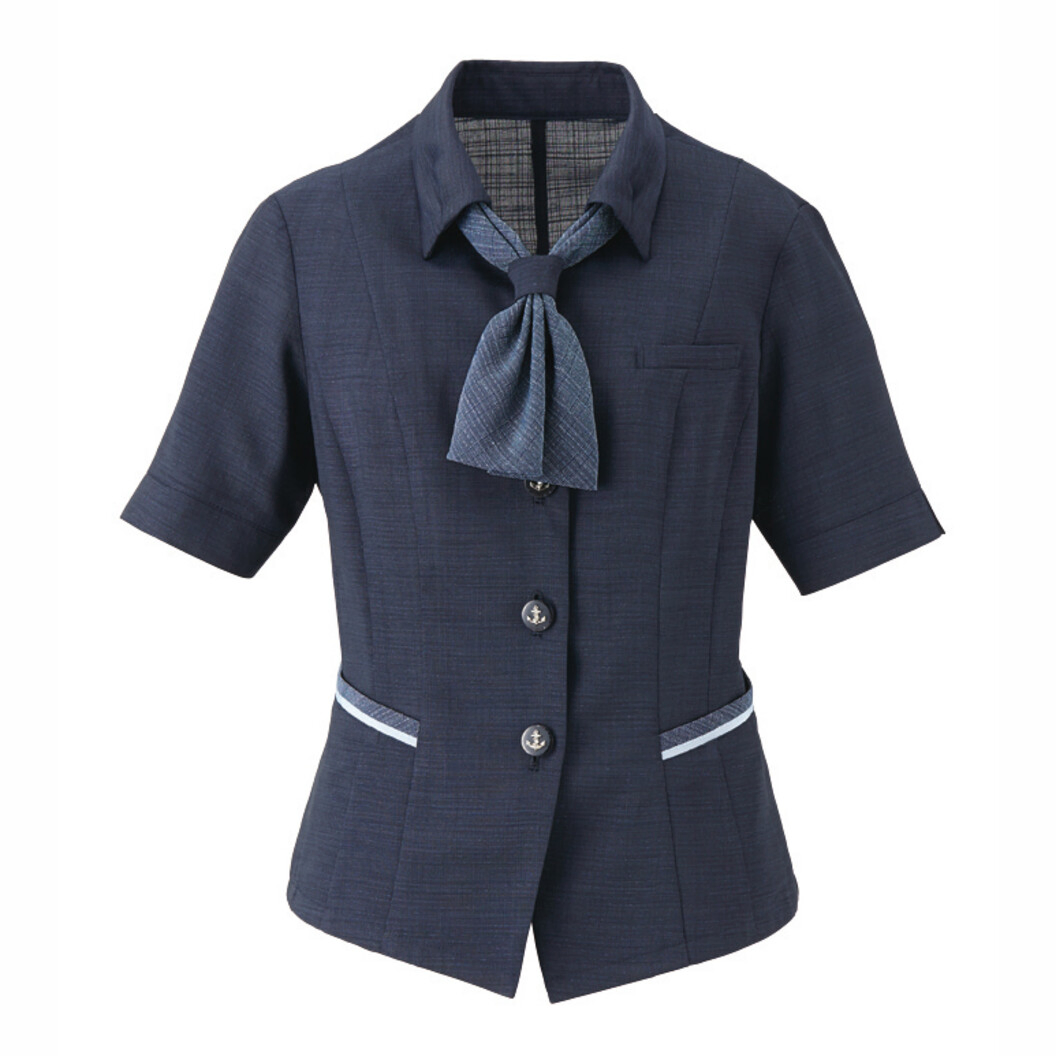 1サイズスマートを叶える!純銀オーバーブラウスです。 知的で洗練され、美意識がプロ意識に変わる1着です。 1サイズスマートに魅せる、7面体で女性の曲線美を美しく見せるシルエットです。 ゆったりとしたサイズ寸法でも美スラッと効果があります。 女性らしいスカーフの様なネクタイのアクセサリー付きです。 (アクセサリー部分は縫い付けなので無くすことなくじゃぶじゃぶ洗えます) 衿部分に花のつぼみタック入りでエレガントを演出します。 裾のカーブとシングルスリットで美スラッと効果があります。 SwingARM360°搭載で動きやすく、チラ見え防止のバストケア釦。 マルチポケット付きです。