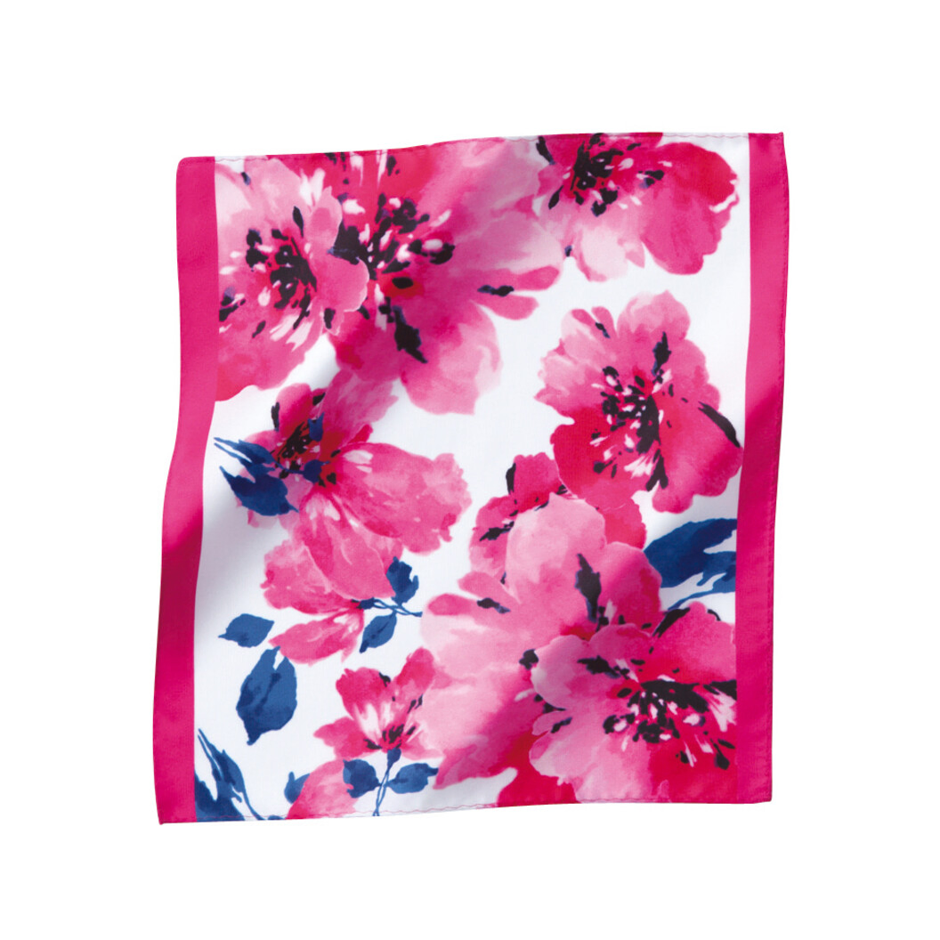 花柄のきいたモダンなデザインのミニスカーフです。