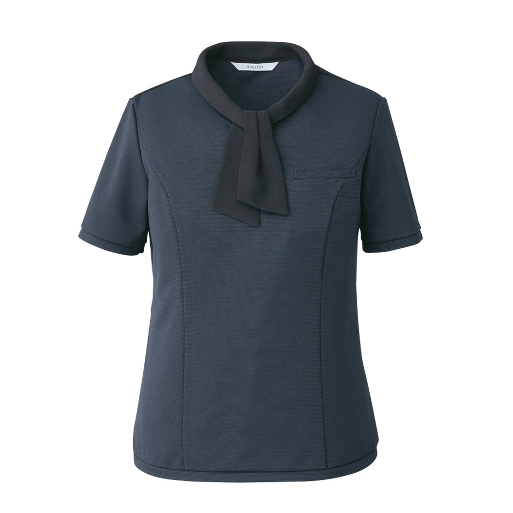 きちんと感のある配色衿がエレガント。夏の品格を保つオフィスポロシャツです。 ストレッチで着心地が抜群の、しわになりにくい仕様です。 布帛使いの立体的な配色衿できちんと感のあるデザインです。 前釦開きかぶりで簡単に着脱できます。 耐久性のあるポケット袋布でペン先の当たりを防止。 切替使いの袖口、裾でカジュアル感を払拭。