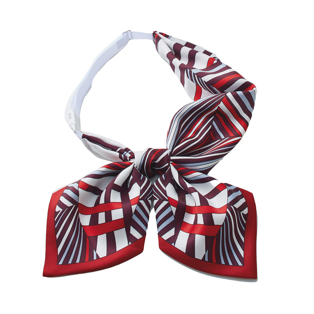 シャープな幾何学柄で凛としたクラシカルな印象のリボンスカーフです。