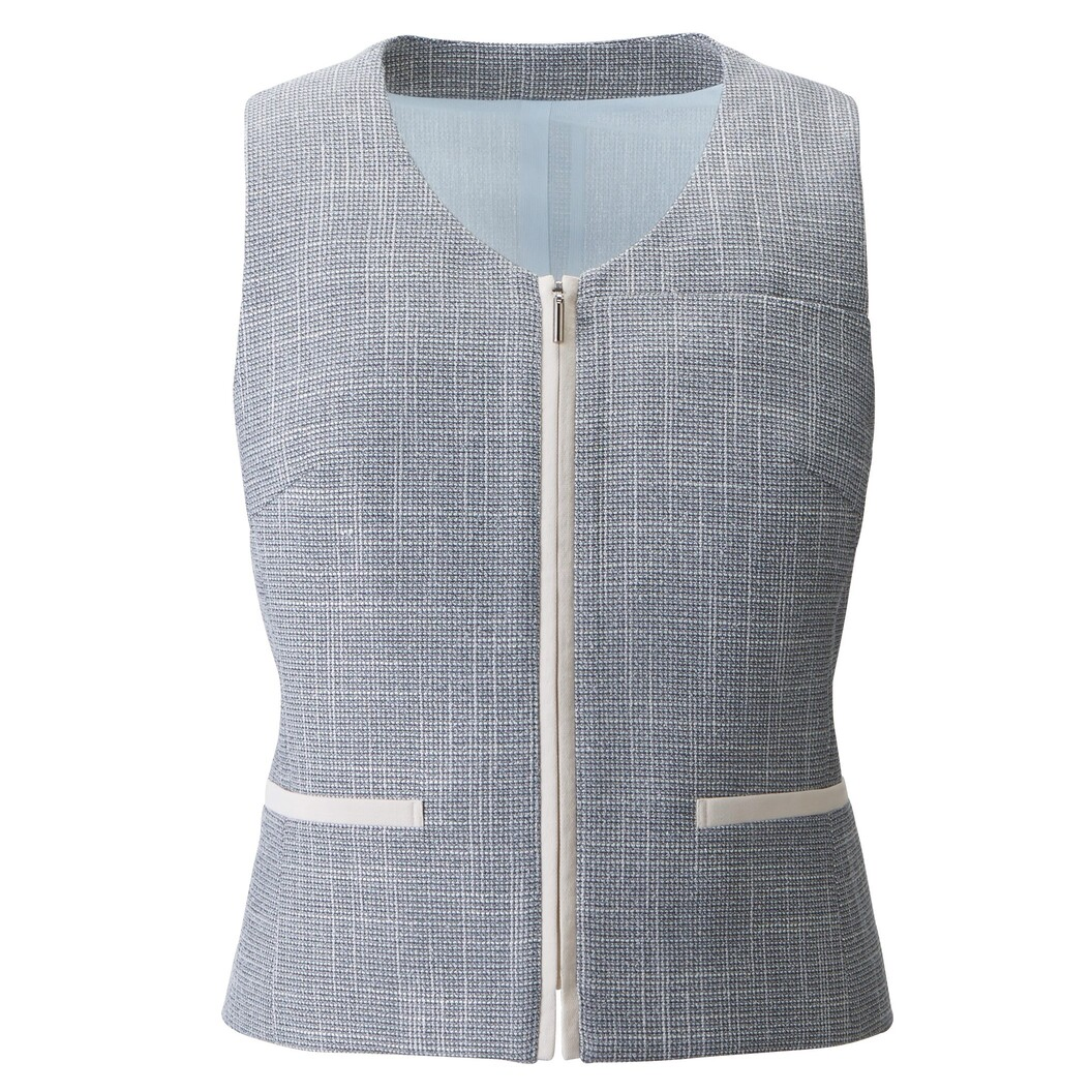 スタイリッシュな新定番。真夏の日でも、不思議とひんやり!ネオ スラブ ツイード。 ウエストを絞らない「Iラインシルエット」と「フロントジップデザイン」が特徴のベストです。 ファッショントレンドを取り入れた先進的なデザインと表情豊かなサマーツイードが女性らしさとクラス感を演出します。 高い通気性に加え、キシリトールの涼感加工を施し、いつでもひんやり快適。 さらに、背抜き&メッシュ裏地の涼しい仕立てが暑い夏でも軽やかな着心地をキープします。 お手入れも簡単なオリジナル素材です。