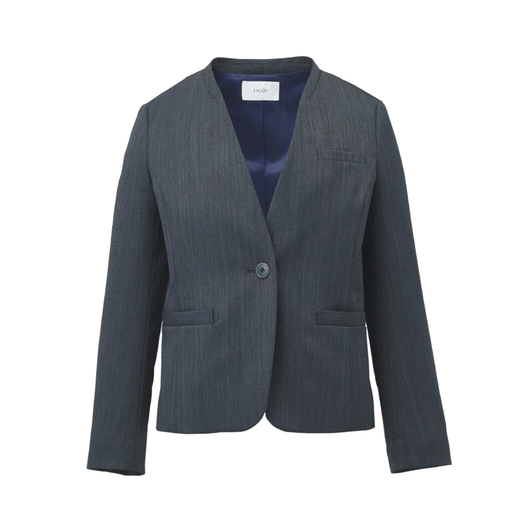 衿なし&肩パットなしの軽やか仕立て。すっきりとした印象のノーカラージャケットです。 ミニマルデザイン×ミディ丈スカートで作り出すモードなNEWスタイルは、フラットシューズでも似合う絶妙なバランスが魅力です。 ウールや再生ポリエステルを使いながら、天然の鉱石が持つチカラを活用しエアコンに頼りすぎず快適に過ごせる機能をプラスした、エコな素材を使用しています。