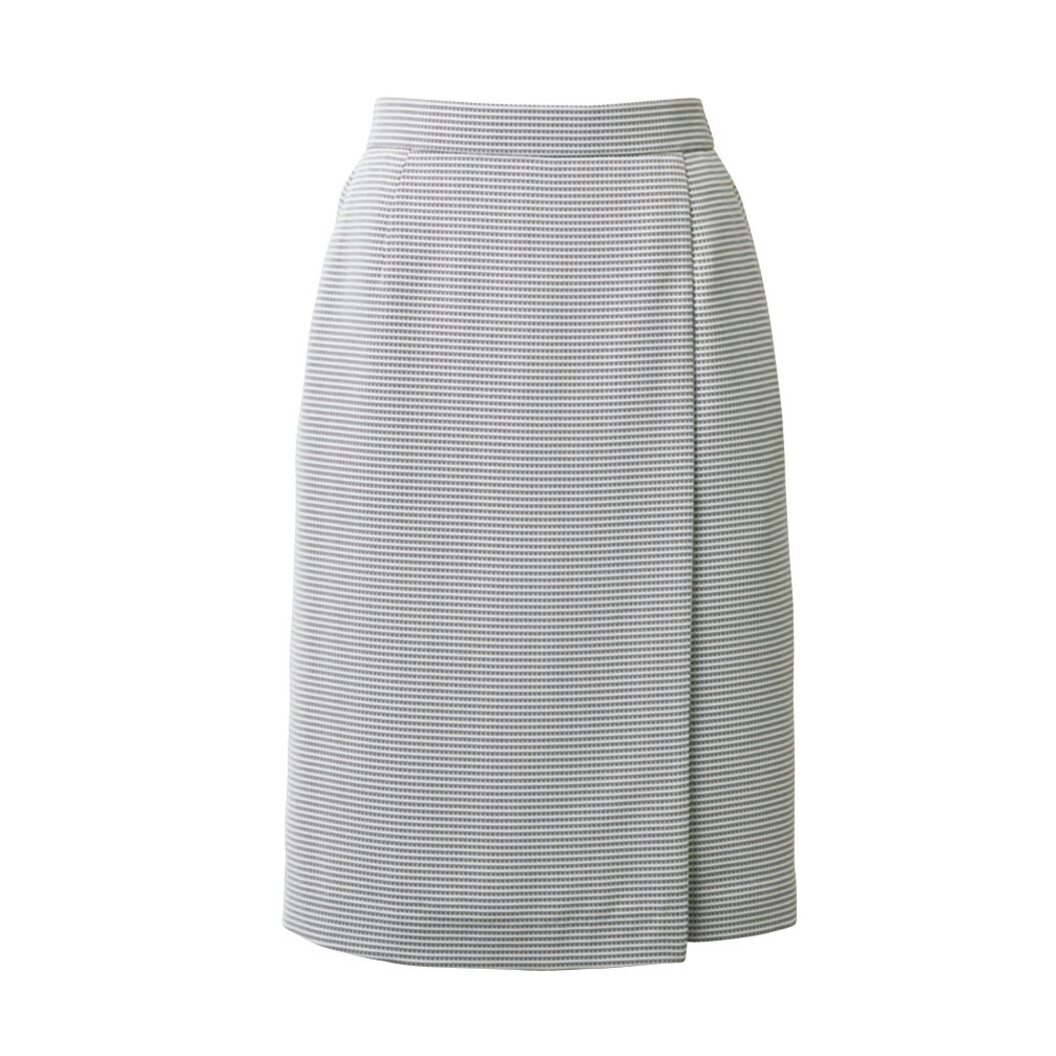 清々しく、上品な佇まい。涼しげで爽やかなボーダーをミニマムなデザインに落とし込んだ「クリアボーダー」シリーズ ひざが隠れる上品レングスでロング&リーンなタイトスカートです。 制菌加工で清潔さをキープした医療事務・クラークの方にもオススメ。
