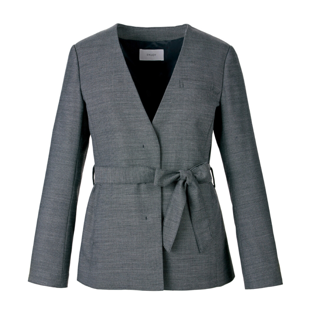 ミニマルなIラインシルエットにウエストマークのリボンがポイントの女性らしい印象を持たせたノーカラージャケットです。 長め丈で腰回りを程よくカバーし、肩パットなし&衿なしの軽やか仕立てになっています。 エコな素材を配合した、地球にやさしい装い。 糸を引きそろえて織り込んだバスケット風組織。 多色使いによるナチュラルでシャンブレーな表面感が特徴です。 伸縮性のある植物由来のソロナ繊維を使用し、かつ環境に配慮したオーガニックウールもブレンドしたエコロジーな素材です。