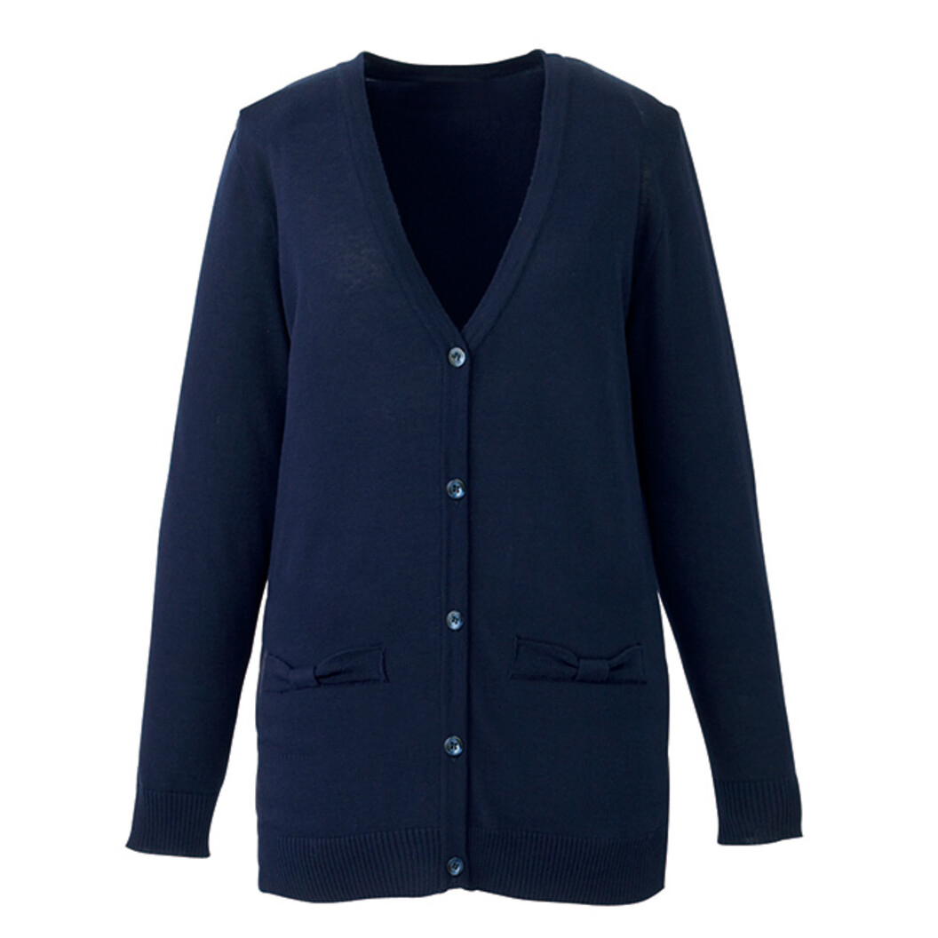 冷えとたたかう女性のうれしい味方。「体感マジック カーディガン」。 温度と湿度の調整により、夏も冬も心地よく体温調整が可能です。 人気の“体感マジックカーディガン”は、冷えやすい女性の体に配慮しています。 快適温感繊維「Cell Solution CLIMA」とアクリルを組み合わせ、糸からつくり上げました。 外との寒暖差にも、社内の冷暖房にもカーディガンが適温に合わせてくれます。 どんな気温でも心地いい状態を保ってくれる特殊な素材を使った、オールシーズン着られる万能カーディガンです。 従来のウール混のカーディガンと違い、肌ざわりがチクチクせずしっとりやわらかい再生繊維(セルロース) で仕上げました。 動きやすい計算されたシルエットは、腕まわりをしめつけず、動きやすさを追求しました。 ブラウスの上からでも、さらっと着こなせる上品なシルエットを実現。 リボンをほどこしたポケットがついて、どんな制服にもぴったり似合います。 中性洗剤を使用した手洗いがOKだから、気になったらいつでもホームクリーニングでお洗濯できます。