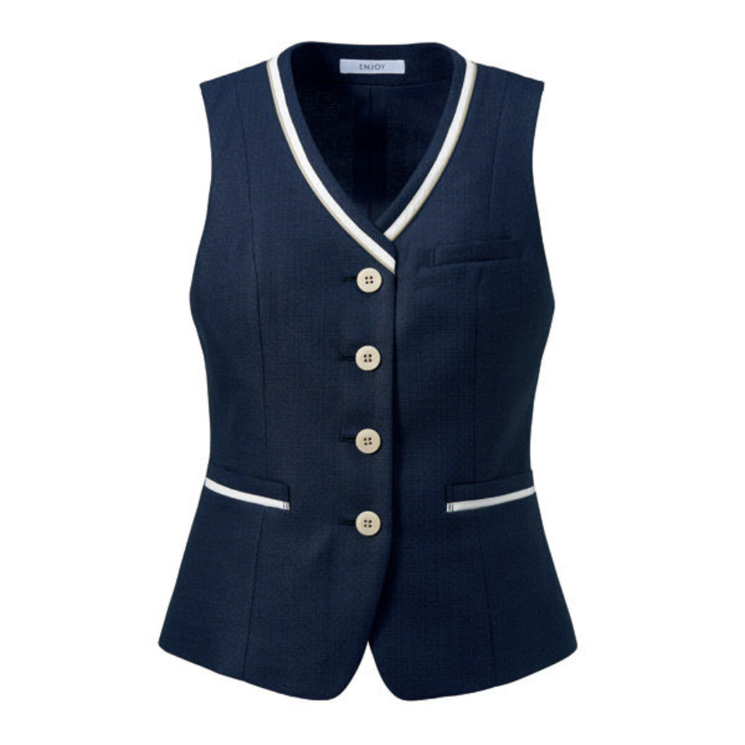 着心地も見た目も、夏らしく 涼やかに! どんなオフィスにも馴染むベーシックデザイン&年齢も体型も選ばないシルエットで、すっきりキレイ見え、白ラインのアクセントで顔色も明るい印象に! 毎日のように着るものだから、キレイにも、ベンリにも妥協なし!2色ラインでデコルテすっきり見せ、 白ラインの効果で、顔まわりを明るく演出します。 ARM FITの効果でアームホールがきれいにフィットし、気になる胸の浮きを抑えます。 素材には、特殊ポリエステルスラブ糸「ファイ/F.A.I」を使い、麻のようなドライタッチと軽やかさを実現しました。 ツイード調の質感と光沢感をもつ、夏らしい薄手の生地に仕上げました。 洗濯機でも手軽に洗える、ENJOYオリジナル素材です。