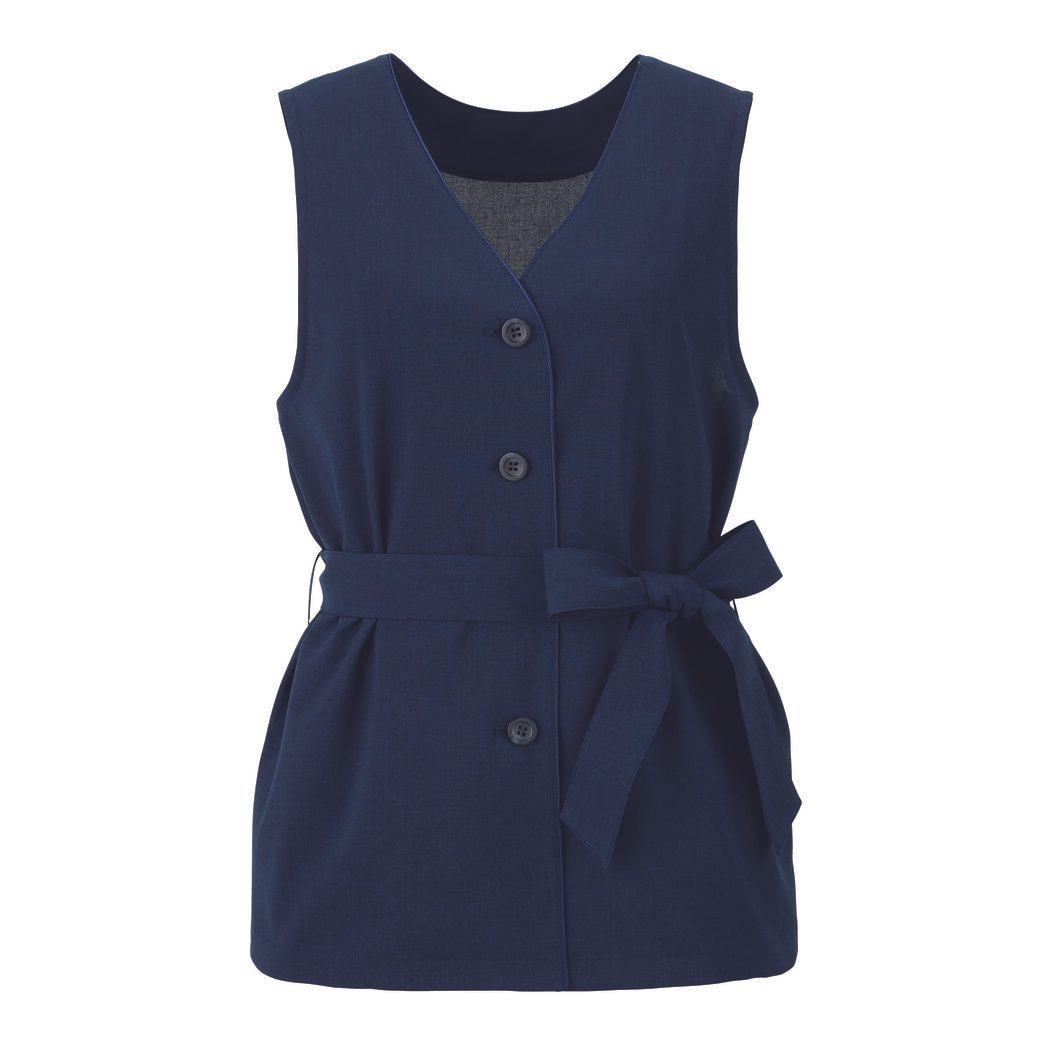 安心の「制菌・抗ウイルス加工」。 常識をこえた軽さで、今まで以上に自由な着こなしを。 これからの時代に働く女性達を応援するシリーズ「TRABEST CARE」。 2WAYベストでバリエーション豊かなスタイリングできるシャツベストです。 シャツベストのボタンを前にしてスカートを合わせ、フェミニンスタイル、ボタンを後ろにしてパンツを合わせれば、医療用スクラブのようにスタイリッシュに着こなせます。素材は糸をムラがあるように染めることで、奥行きのある色合いを表現。ウールのようなフェイス感と適度なハリ感、軽くてドライタッチなトロピカル組織のポリエステル素材。 ウォッシャブル、ストレッチ、吸汗速乾、防シワを兼ね備え、制菌・抗ウイルス加工「DEOFACTOR Antivirus」を施し、様々な場面で快適に過ごせる機能素材です。