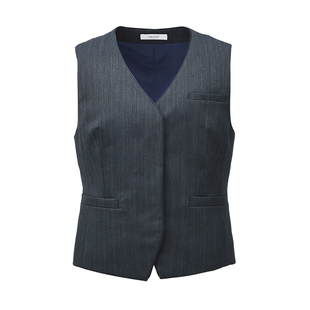 すっきりとした印象の比翼デザインベストです。 ミニマルデザイン×ミディ丈スカートで作り出すモードなNEWスタイルは、フラットシューズでも似合う絶妙なバランスが魅力です。 ウールや再生ポリエステルを使いながら、天然の鉱石が持つチカラを活用しエアコンに頼りすぎず快適に過ごせる機能をプラスした、エコな素材を使用しています。