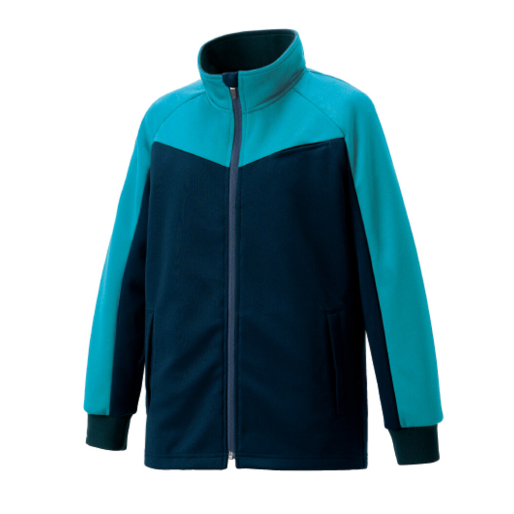 両腰のフロントポケットは手入れがスムーズな裏メッシュ仕様のジャージジャケットです。 袖口はフィット感の良いリブ仕様です。 ファスナーの引き手がピタッと留まり、ぶらぶらしません。 衿上にファスナーの引き手が収まるカバー付きです。 人に当たらないようファスナーのテープは裏使い。 左胸の切り替え部分に便利なスリットポケット付きです。