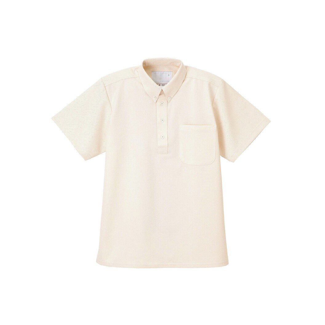 親しみやすいボタンダウンのカジュアルなスタイルです。ソフトな色合いが、気持ちを癒します。 色糸と白糸の組み合わせですっきりとしたさわやかな表面感のある素材です。高い伸縮性を持ち、着心地の良さと動きやすさを提供します。特殊仕上により吸水、防汚効果を付加しています。業務用洗濯にも耐えうる形態安定素材です。