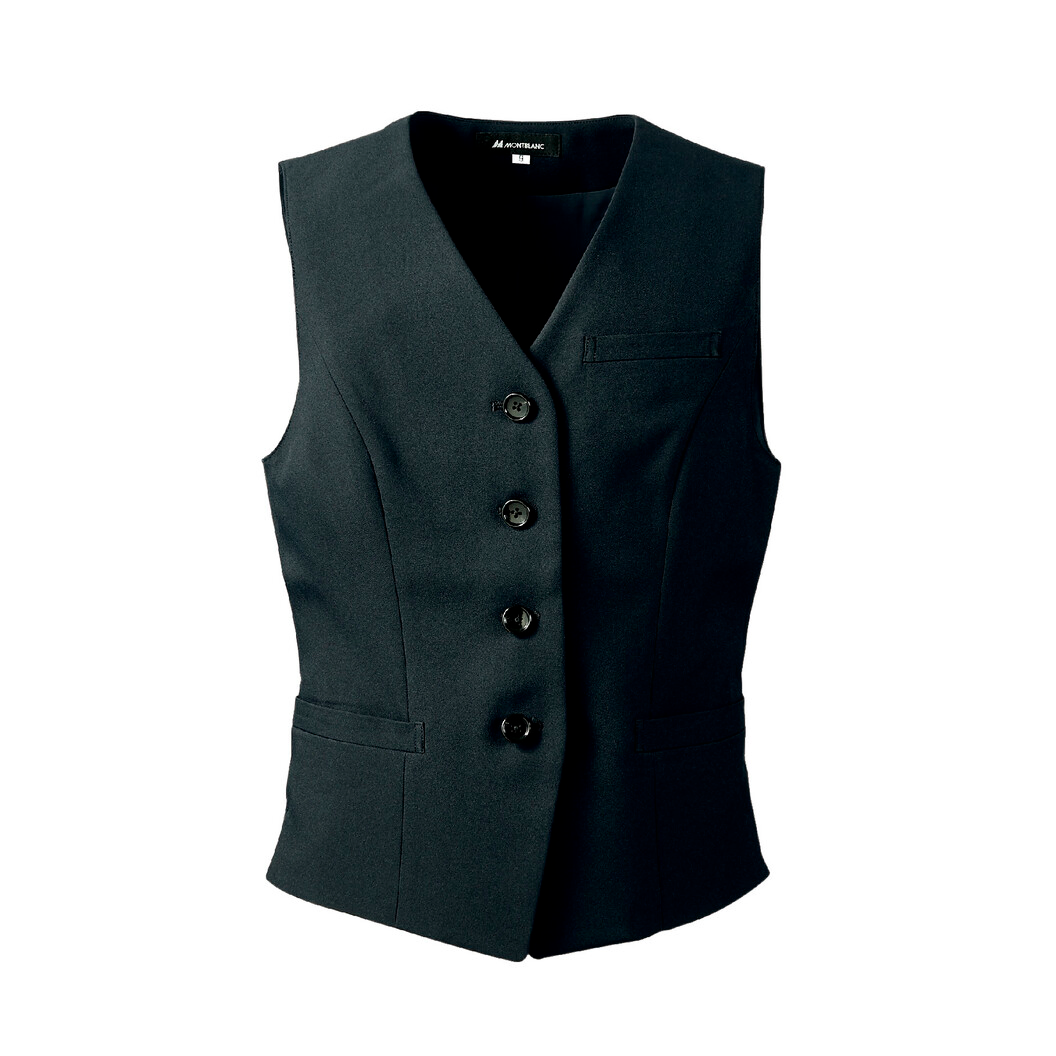 住商モンブランのフォーマル用レディスベストです。 ふっくらと厚みのある素材の風合いが、上品な雰囲気を醸し出します。 深みのある美しいブラックと、ウエストをシェイプしたすっきり美しいシルエットで、洗練されたスタイリッシュな印象に。 ベーシックなデザインでどんなアイテムとも合わせやすく、パンツでもスカートでもバランスよく着こなせます。 バックスリット入りで腰まわりの窮屈感がなく、立ち座りもスムーズ。すべりの良い裏地付きです。