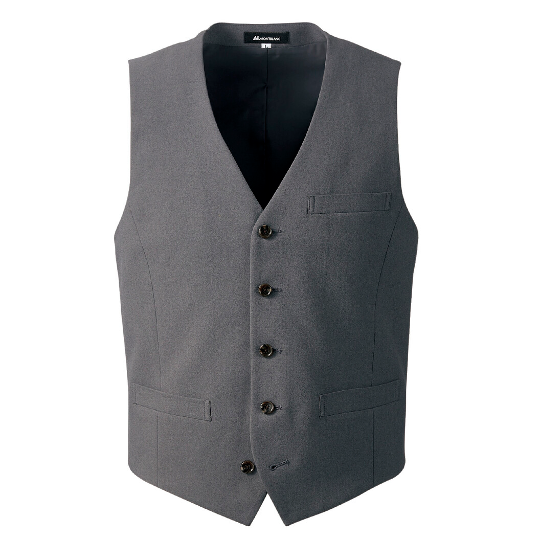 住商モンブランのコンシェルジュ ベストです。 メンズ、ストレッチ機能を付与、ポリエステル100%でありながらウールを思わせるなめらかな風合いです。