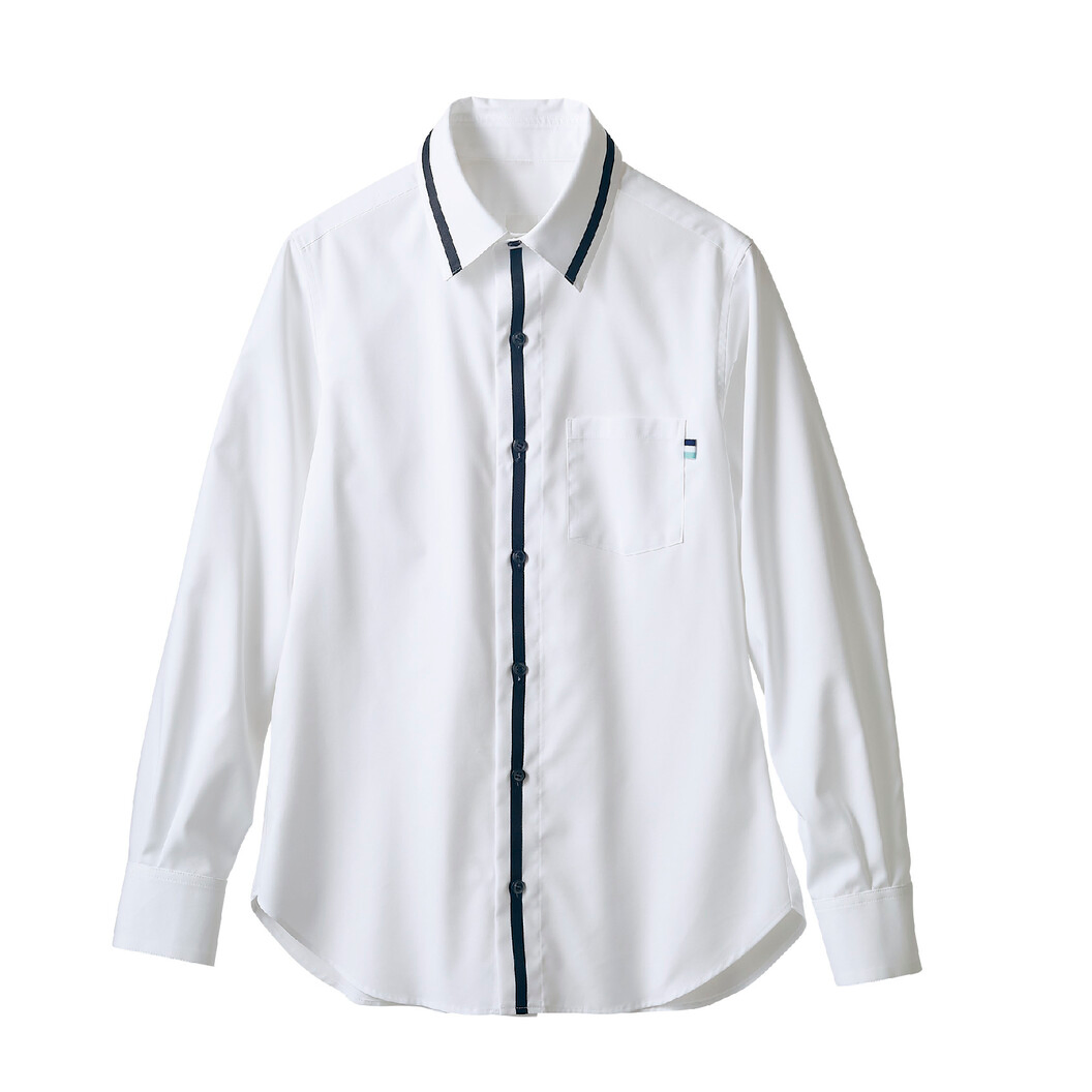 透け防止・ストレッチ機能を付与した、「ワールドグループ」とのコラボ商品、「ブランシェ」シリーズのシャツです。 モノトーンカラーとソリットなシルエットで魅せる洗練された上品なスタイル!