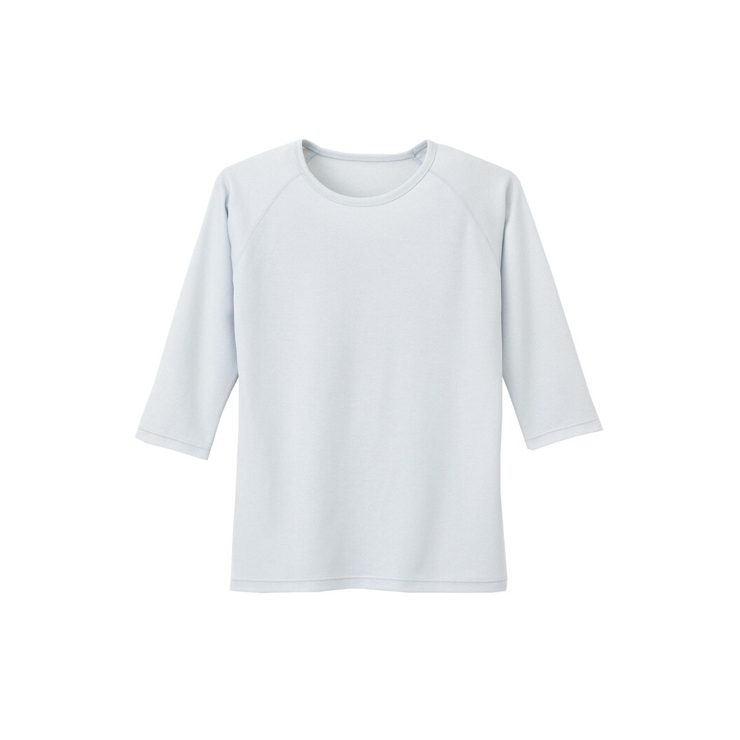 スクラブ着用の際に防寒カ-ディガン代わりに着る「吸湿発熱」機能を持ったあったかインナ-です。スタンダードなクル-ネック(丸首)の八分袖デザインです。スクラブとのトータルコーディネートの提案です。 ストレッチ性に富んだ丸編み素材です。肌側の綿が吸湿する際に発生する熱を外層の中空糸が保温することであたたかさをキープします。