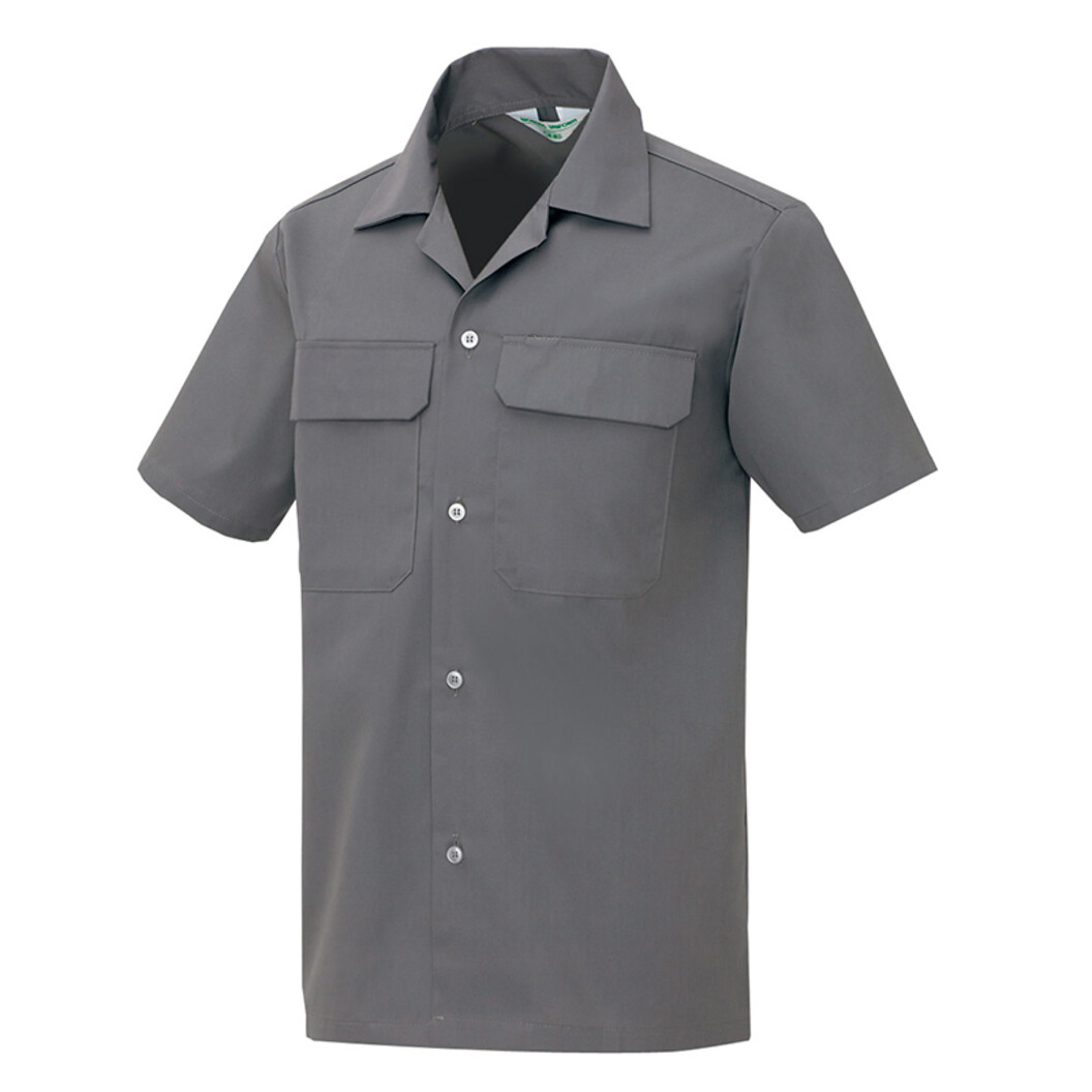 ワーキングウェアの原点ともいえるベーシックタイプの半袖シャツです。 シンプルなデザインで根強い人気の半袖開襟シャツです。 耐久性と着心地の良さを両立させたロングセラー商品です。 JIS T-8118対応の高度な帯電防止機能付きです。