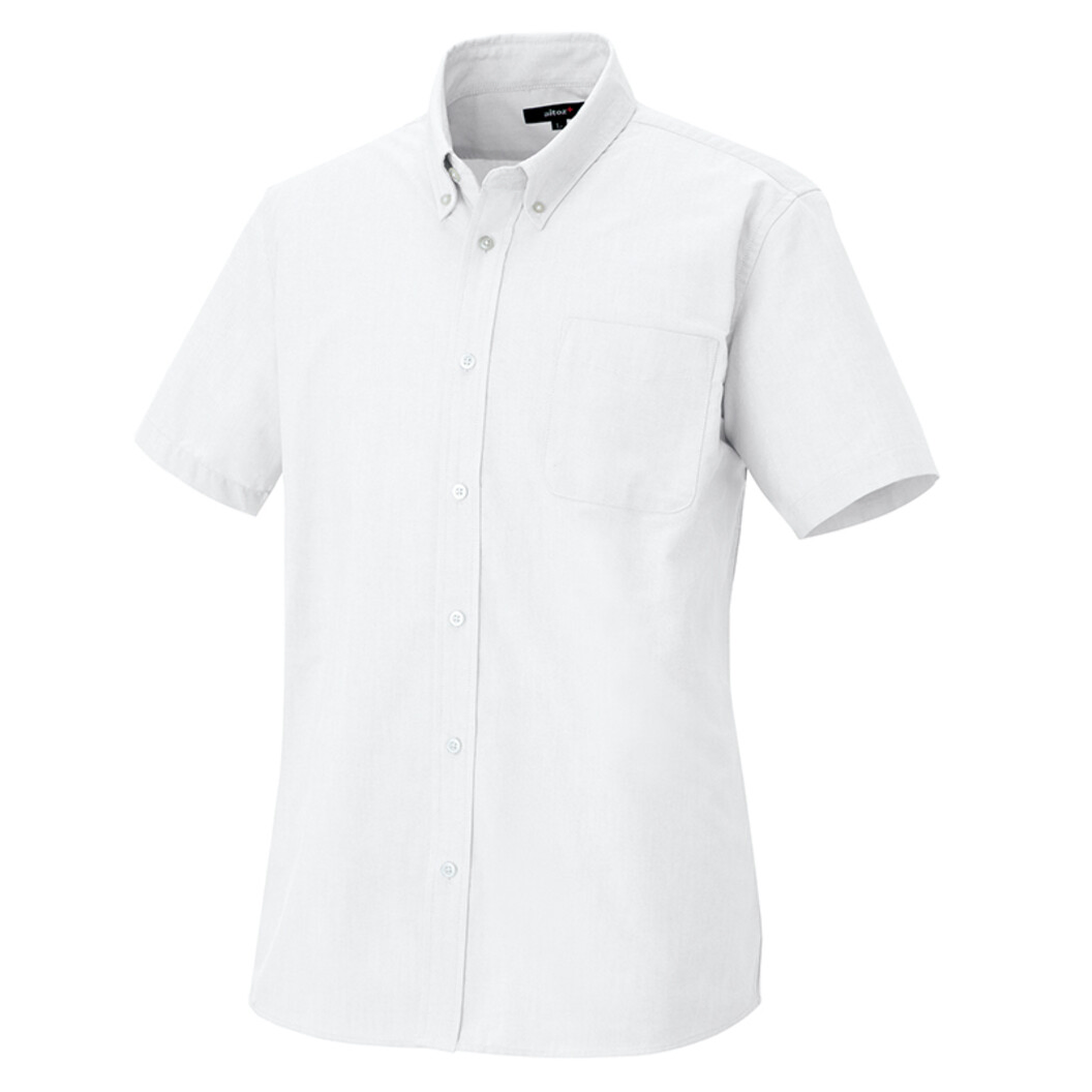 丈夫で長持ちし、ボタンダウン仕様で、襟が立つのでフォーマルな印象を与えるメンズ用半袖シャツです。 飲食店やサービス業などのユニフォームとして、また、カジュアルなシーンでも着用することができます。