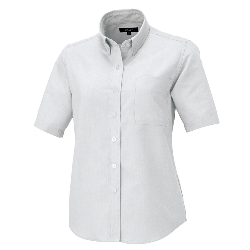 丈夫で長持ちし、ボタンダウン仕様で、襟が立つのでフォーマルな印象を与えるレディース用半袖シャツです。 飲食店やサービス業などのユニフォームとして、また、カジュアルなシーンでも着用することができます。