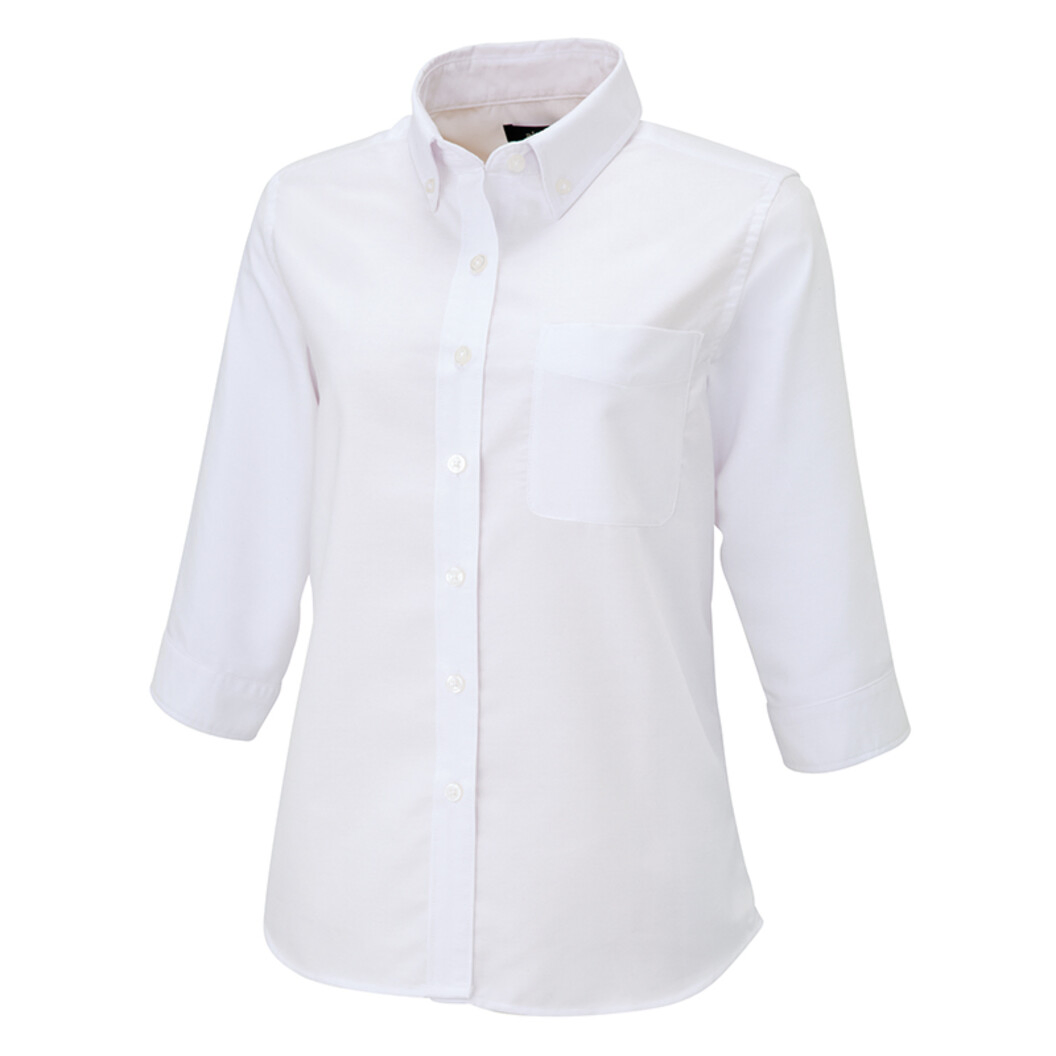 丈夫で長持ちし、ボタンダウン仕様で、襟が立つのでフォーマルな印象を与えるレディース用七分袖シャツです。 飲食店やサービス業などのユニフォームとして、また、カジュアルなシーンでも着用することができます。