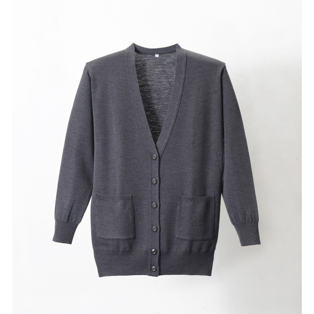 ロング丈は冷えの気になる季節の強い味方。 腰回りやお尻をすっぽり隠してくれるゆとりのデザインで、便利な貼りポケ付カーディガンです。 素材・縫製共に安心の日本製です。 毛玉が出来にくい抗ピル加工と静電気防止加工を施しました。