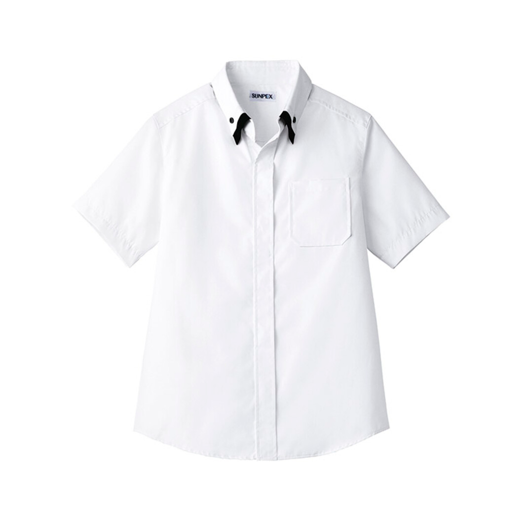 黒と白のシャツにさりげないアクセントを加えました。モノトーンスタイルを簡単にブラッシュアップすることが可能なモダンさが自慢の一着です。●男女兼用のSS、Sサイズはレディス用、Mサイズ以上はメンズ用。
