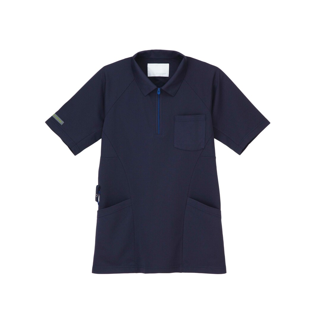 動きやすく涼しい機能性プラスきちんと感のある衿付きのデザインです。落ち着いたカラーが高級感を感じさせます。左胸(PHSポケット付き)、前両腰ポケット、後ろ右腰ポケット、ダブルループ付き。 汗を吸い上げる性能に優れ、肌側をサラサラに保つ素材です。気化熱促進繊維により発汗時に涼感効果を発揮します。速乾性に優れているため汗で濡れても早く乾きます。通気性の良い素材です。特殊仕上により吸水、防汚効果を付加しています。
