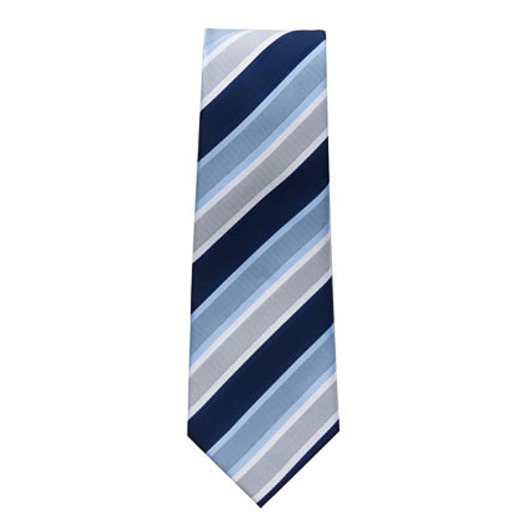 イギリスの伝統的な連隊旗縞から生まれレジメンタル・ストライプという柄名で呼ばれている。わかりやすい柄ですのでユニフォームらしい視認性と連帯感が醸し出される。ポリエステル100%ですので、扱いが楽でシルクより耐久性は高い。