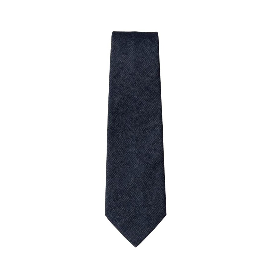 デニムのネクタイ。黒に近いダークインディゴとブルーインディゴの2色展開。ライフスタイルホテルなどのユニフォームはたとえスーツでありながらも私服感覚を取り入れることで上手にリラックススタイルを表現しています。このデニムネクタイも上手く合わせることで、リラックススタイルを表現しながら且つお客様に敬意を表する、ということが出来るアイテムとして開発しました。素材はポリエステル35%、綿65%ですので耐久性に富んでいます。