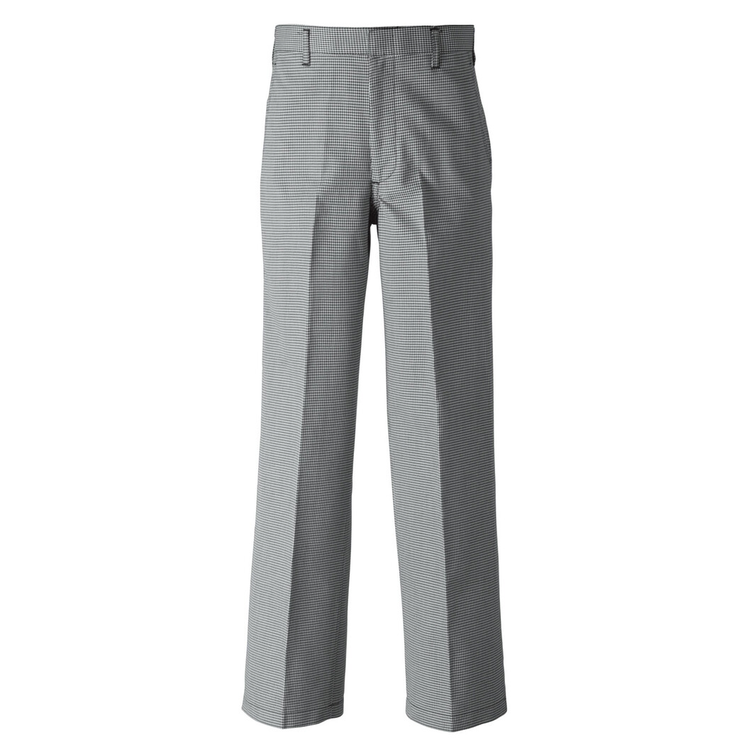 しっかりした千鳥格子の調理用パンツ、男性用です。ゆとりの少なめなスラックスシルエット。